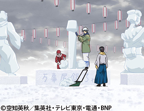 江戸の街は大雪に見舞われ一面の銀世界。そんな中、祭りの始まりを告げるお登勢の声。かぶき町雪祭り、と題されたその祭りは、雪像を作り、グランプリには賞金が出るというものだった。賞金につられて参加する銀時たち万事屋は、ネオアームストロング・サイクロンジェット・アームストロング砲と主張する誰が見ても『ピーー』にしか見えない雪像を作り上げる。新八の冷静なツッコミを他所に、訪れた人々はその完成度に目を見張るばかり。しかし、他の参加者の作品の出来が気になる銀時は、神楽とともに密かに妨害工作を始め、会場に別の意味で祭りの予感が漂い始める……。