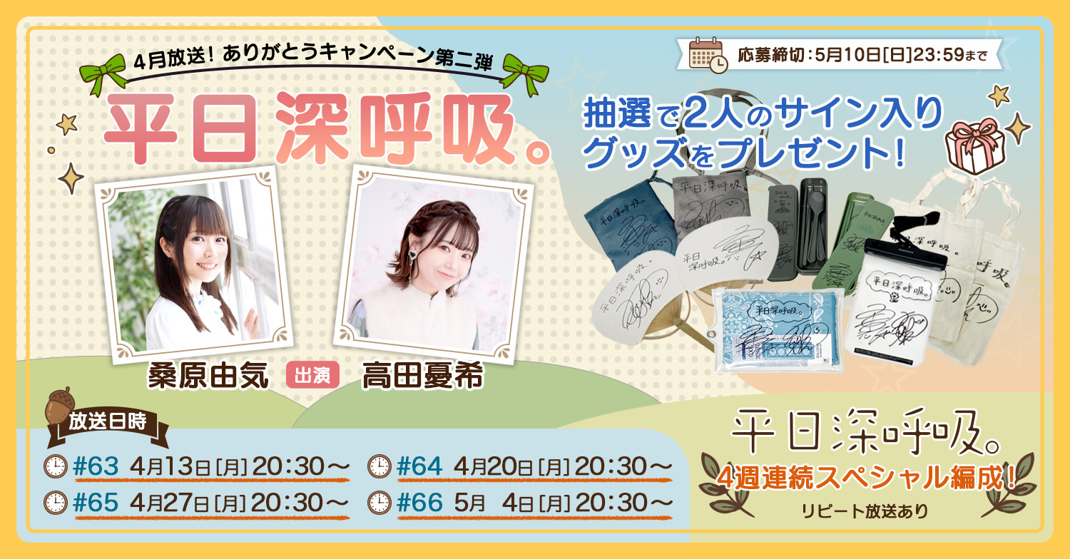 ◇「平日深呼吸。」#64 4月20日(月)20時30分~ ※リピート放送あり
