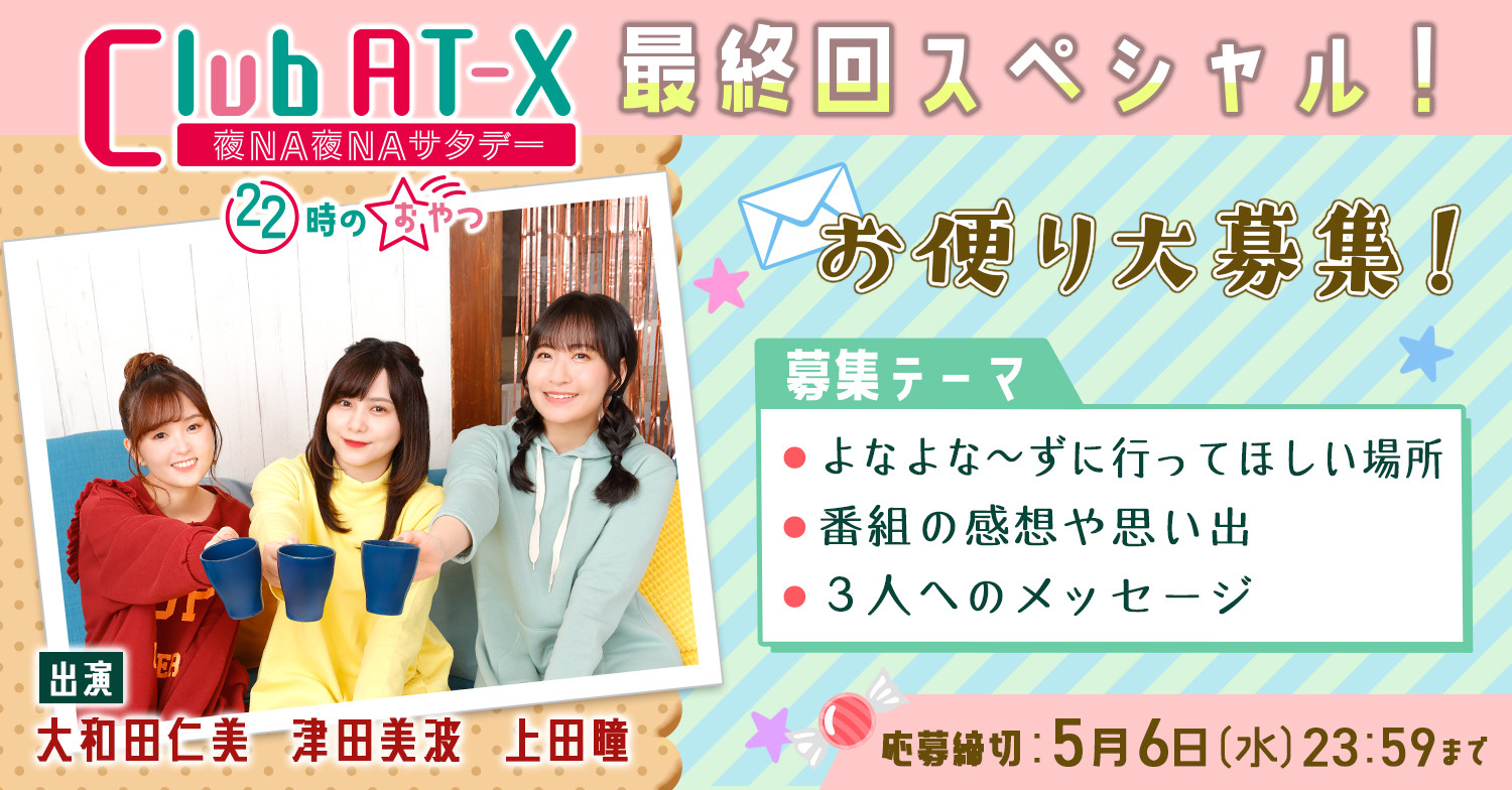 次回、最終回SP!『Club AT-X 夜NA夜NAサタデー 22時のおやつ』お便り大募集!