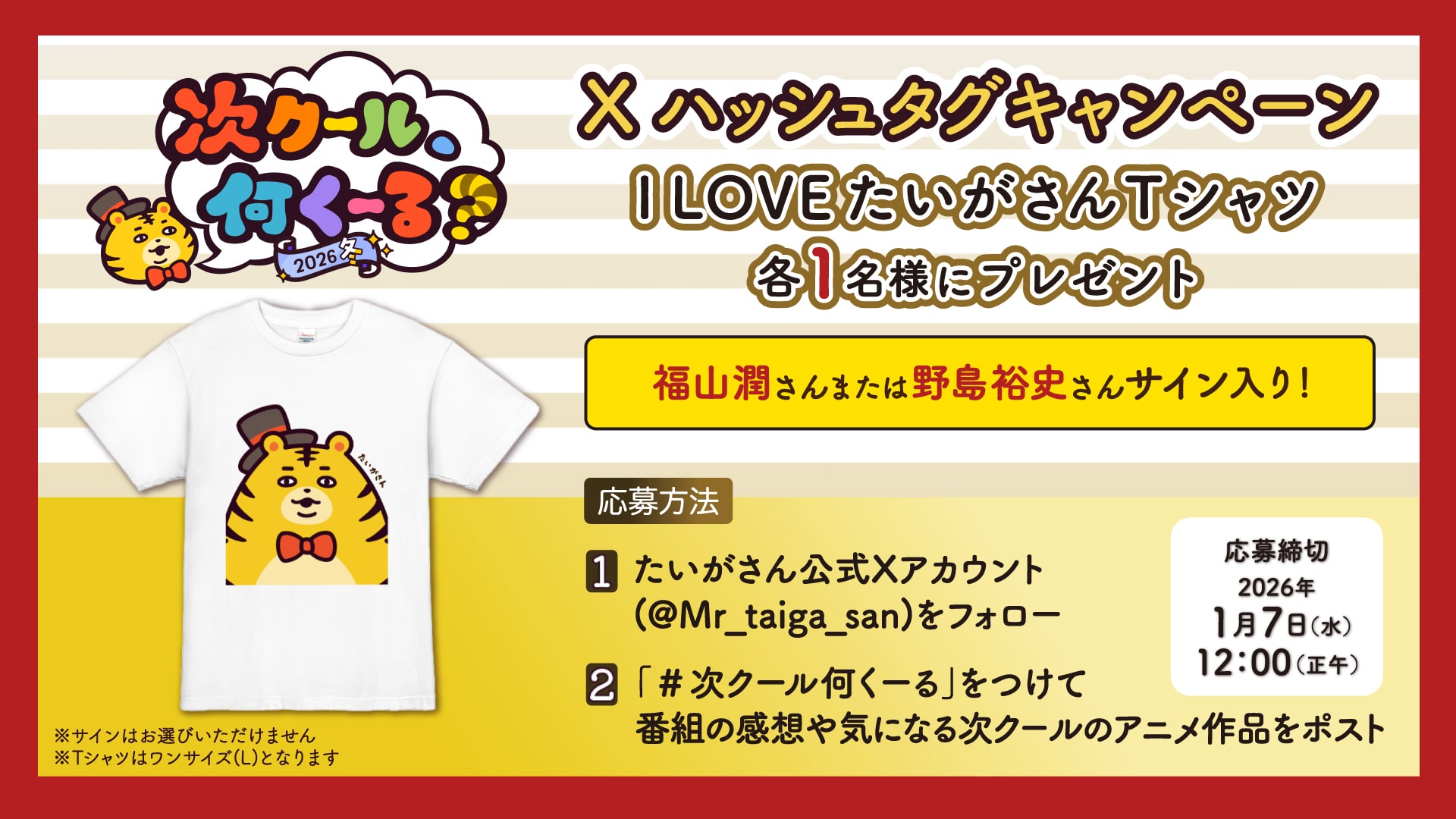 Xキャンペーン『次クール、何くーる?2026冬』【Xフォロー&ハッシュタグキャンペーン】